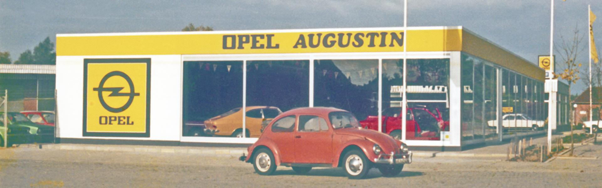 Die Gebrüder Carl & Heinr. Augustin schließen einen Opel Händlervertrag ab. Heinrich Augustin war Kfz-Meister und Fahrlehrer, Carl Augustin der Kaufmann.