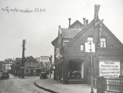 Erwerb eines 1.000 m² großes Grundstück mit Gebäuden in der Emsstrasse 4. Hier wurden Ladenlokal, Werkstatt, Garagen und Tankstelle errichtet und von den Söhnen Carl jun. und Heinrich Augustin betrieben
